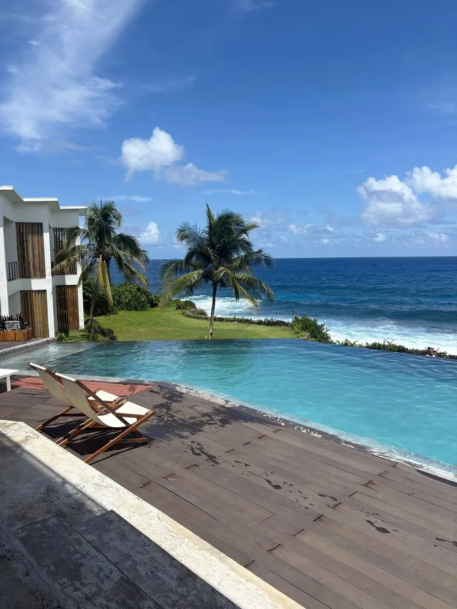 The location caters to both beach enthusiasts and those who prefer pool-based recreation. The setup appears designed to accommodate groups looking for variety in their water-based activities during their stay on Siargao Island.